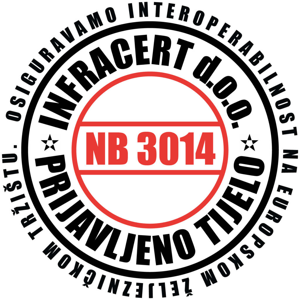 Infracert d.o.o. is registered for the provision of railway services, primarily for the certification of subsystems of the railway system in the process of assessing their conformity with the technical specifications for interoperability (TSI) and national rules.